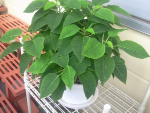 そろそろ短日処理をする時期になってきたポインセチア、すくすくと育ってこんなに大きくしかもたくましくなってきた。