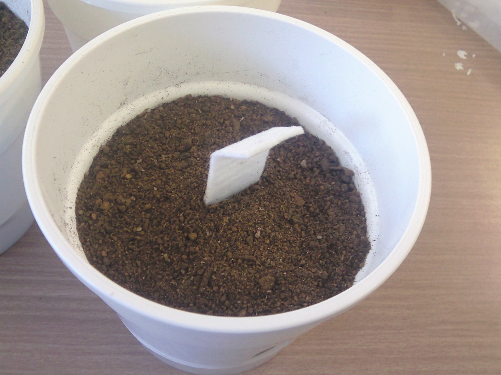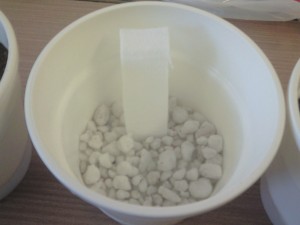 まずは底面給水布を通し、鉢底石をおく、これは軽いものにした。さらに用土を・・・・