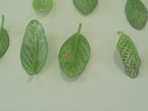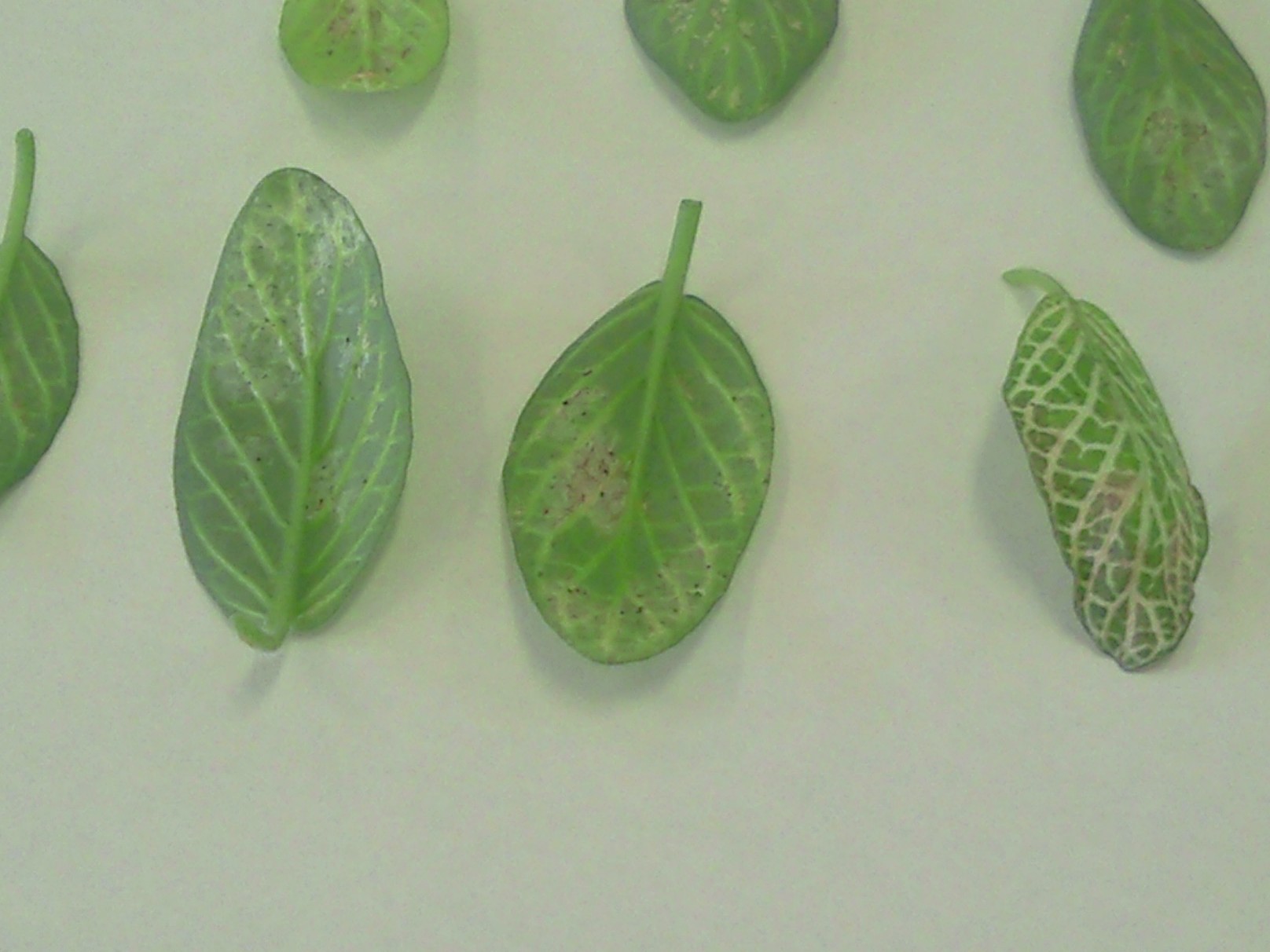 どうも葉が何かにやられている。枯れるような色になっている葉の裏になにやら斑点が、小さな虫のような、だにのような・・・・・原因は分からない。