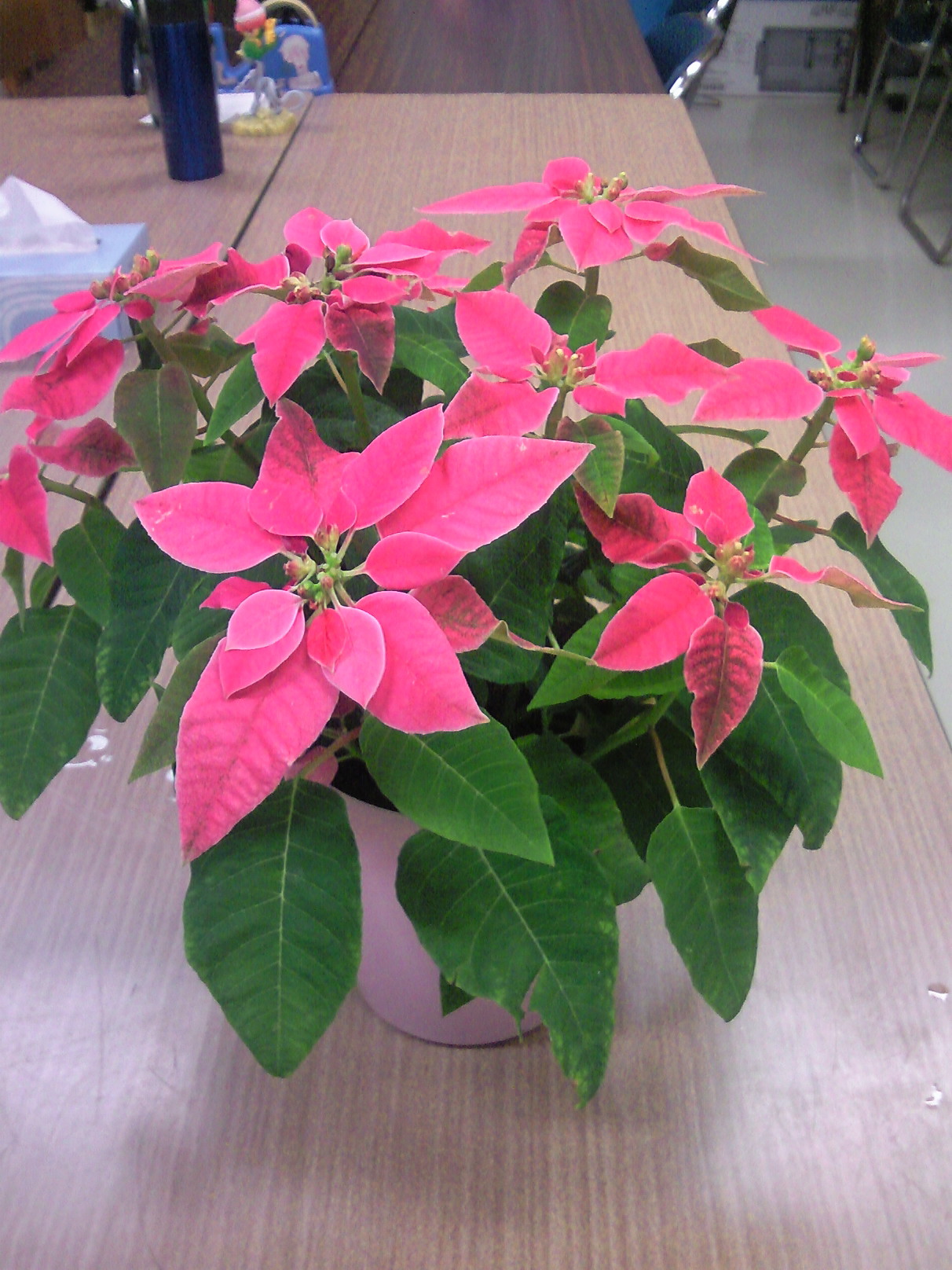 短日処理が必要な植物であるが・・・・しかし、管理が少し大変、昨年はポインセチアの葉がどんどん落ちていった。でも今は原因ははっきりしている。あまり日光にあてなかったのが原因と思われる。