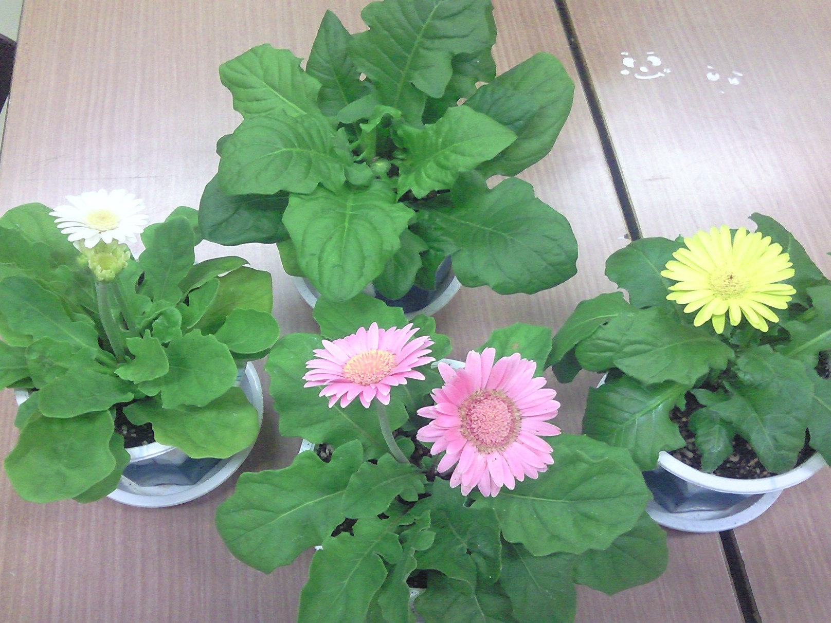 2番目は4種類の色のガーベラ、黄色、白、赤、ピンク、・・・・