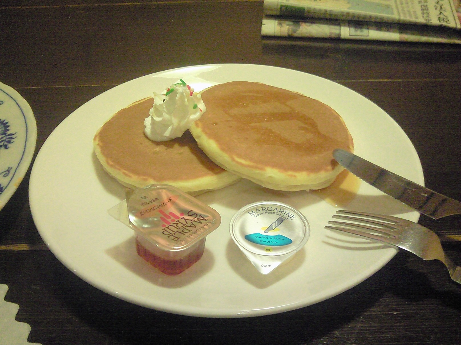 最初の写真はホットケーキ、ここのは本当においしい。次がナポリタン。これまたうまい。