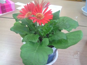 ミニひまわり4株全部開花した。今回は試験てき夏種まきであったが、葉っぱがある程度のこり花の見栄えはよいようである。
