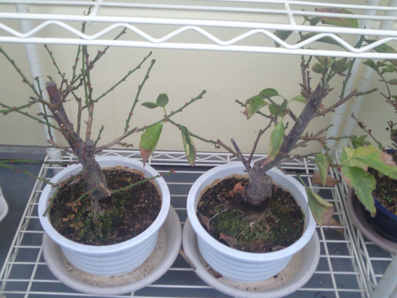 こちらは桜、殺虫剤の扱いが悪くて、葉がほとんどなくなっている。手前のはもうすでに全くない。生きているのかと思うほどであるが・・・・