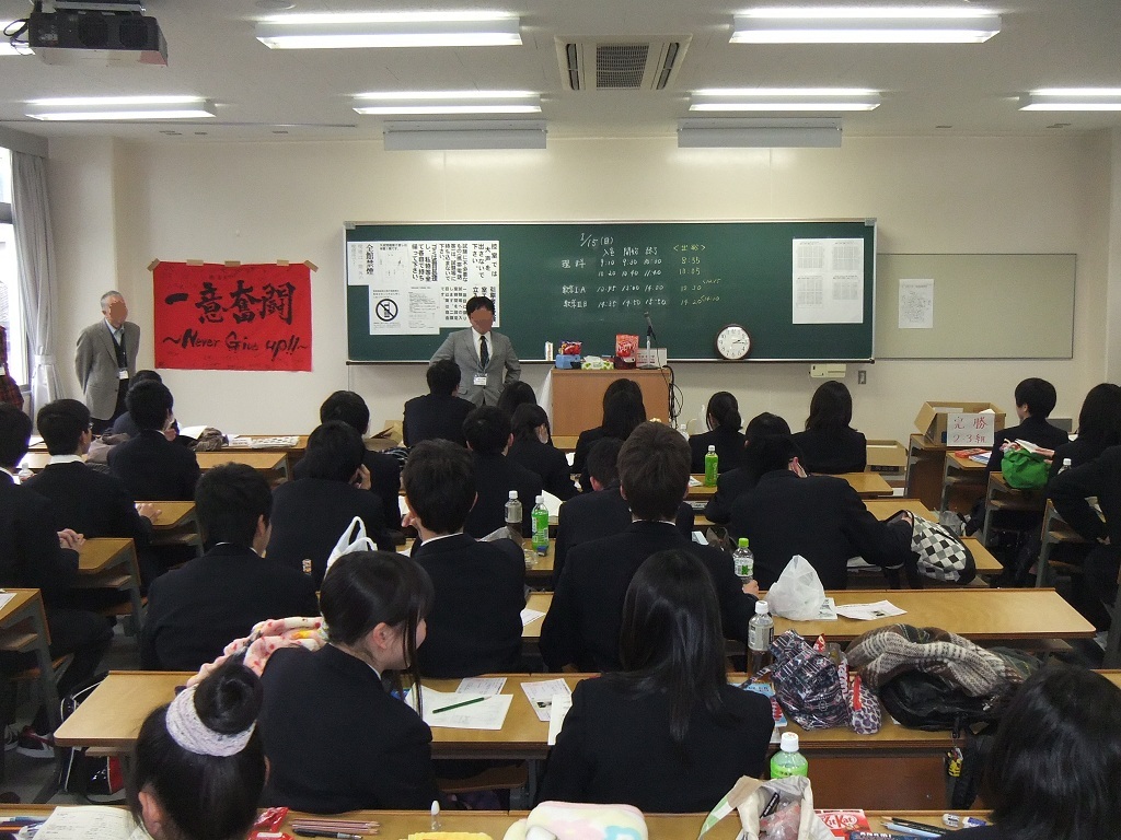 本日、センター試験激励会が行われた。私は、このために、写真の横断幕「校訓等」と「必勝 激励会」、そして、花これはカランコエを使用、さらには、はちまきも使用した。数学は代表者だけであったが、わたしは、幕おろしがかりをした。