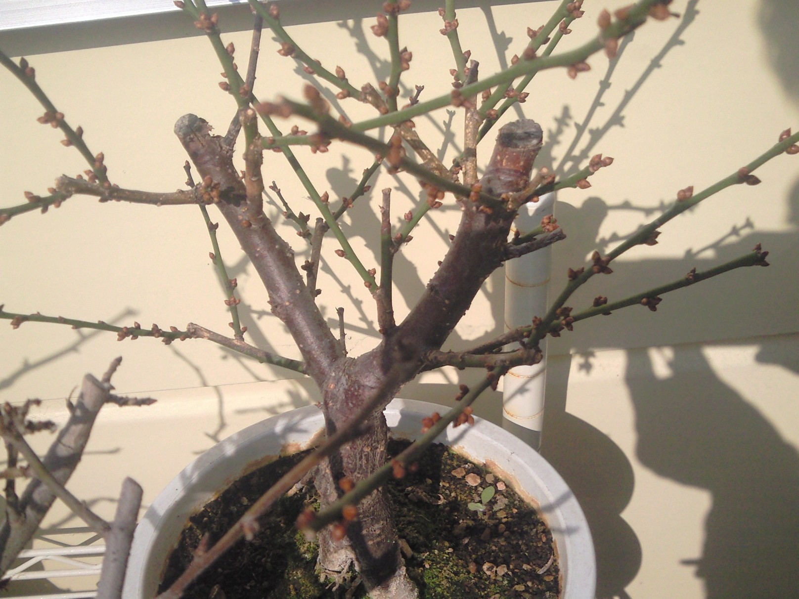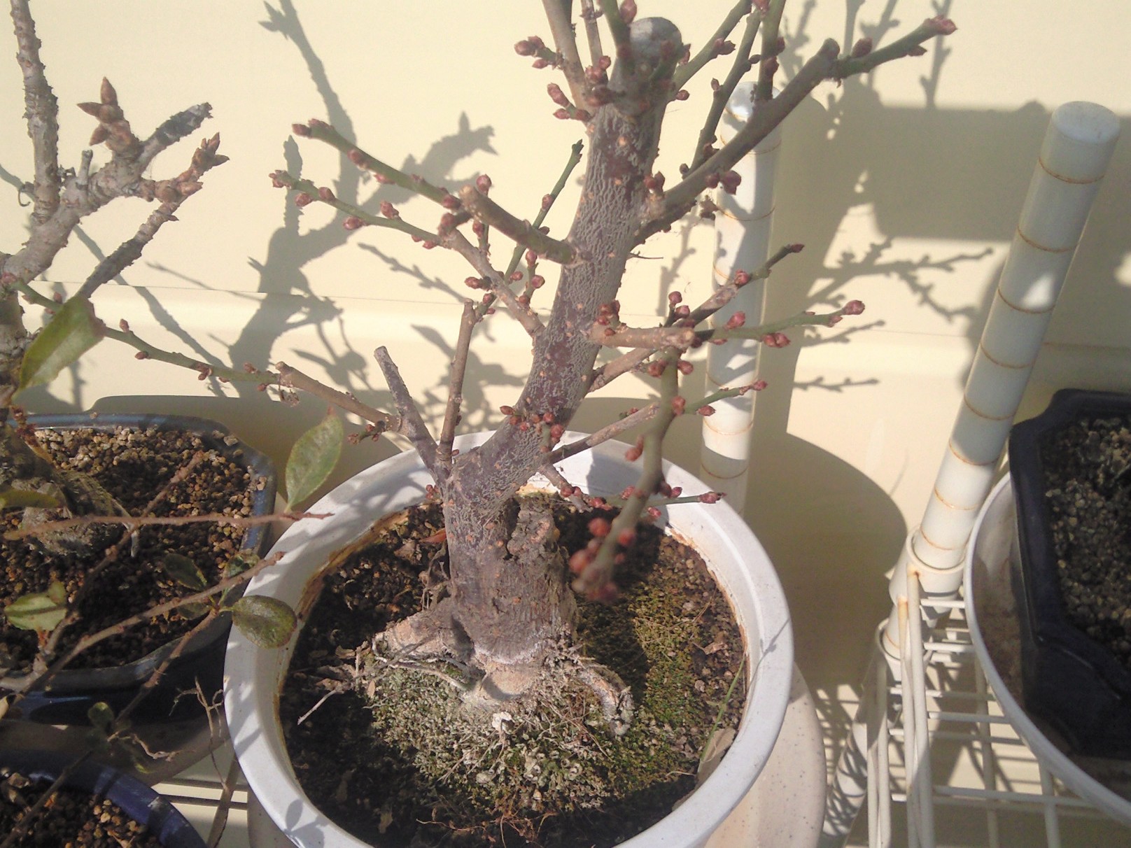 寒さにあたると開花準備となるらしいが、この寒さの中梅がなんとなく開花準備をはじめたような、こころもと大きくなった気がするけど・・・・・どうだろう