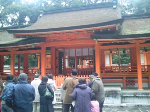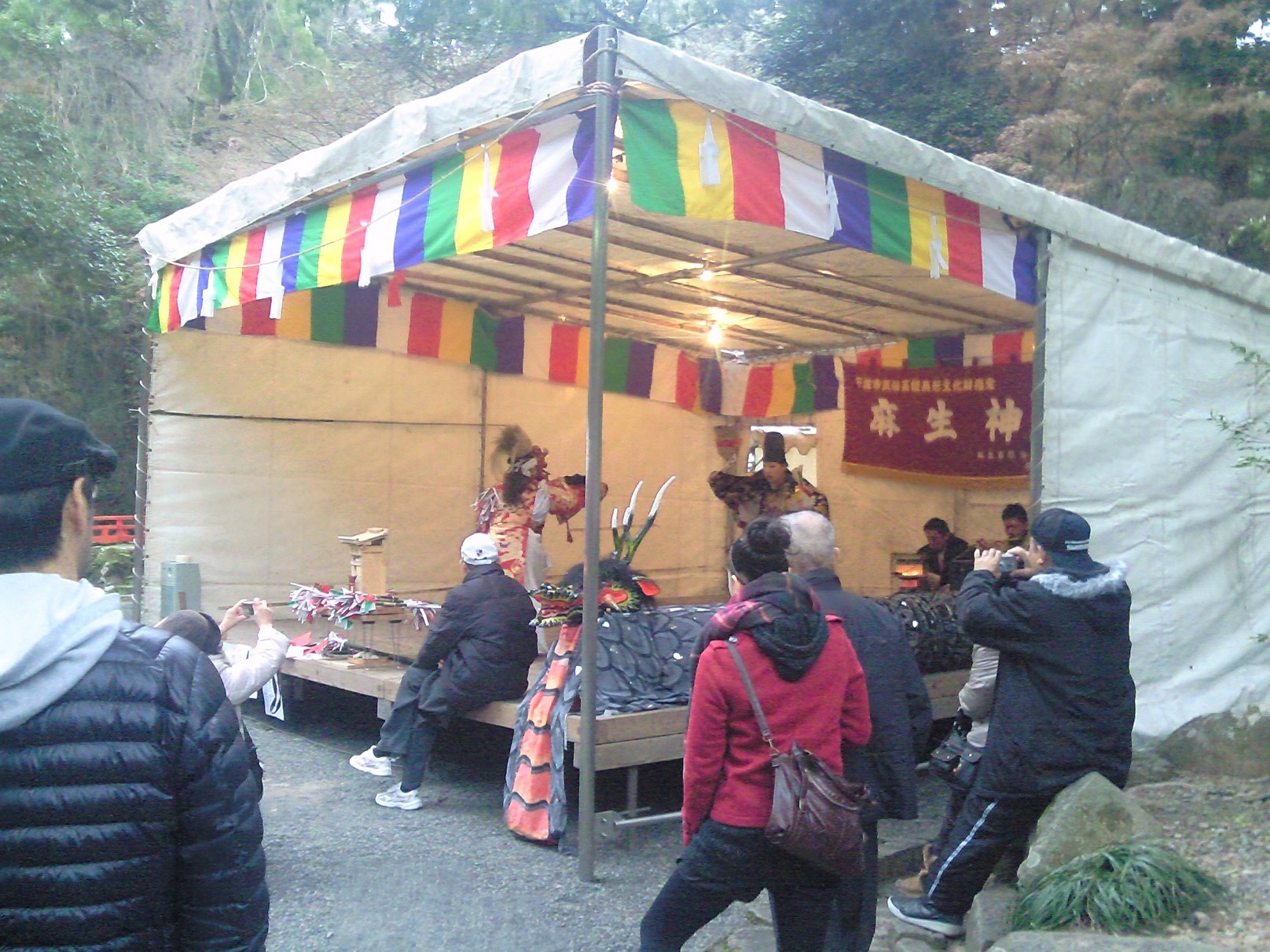 入り口でお神楽が演じられていた。結構人だかり・・・・