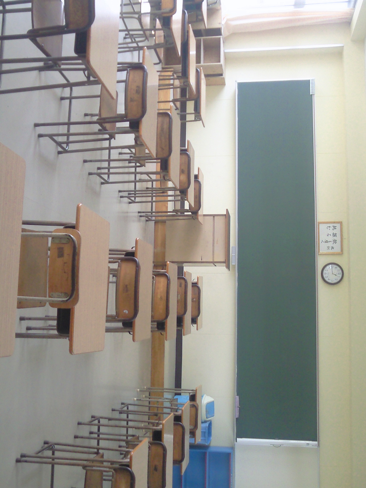 学校に着くとさすがに今日は生徒はほとんどいない。教室に行くと、誰もいない、しかもきれいに片付いていた。ここで1年間授業したのか・・・・懐かしさが・・・・