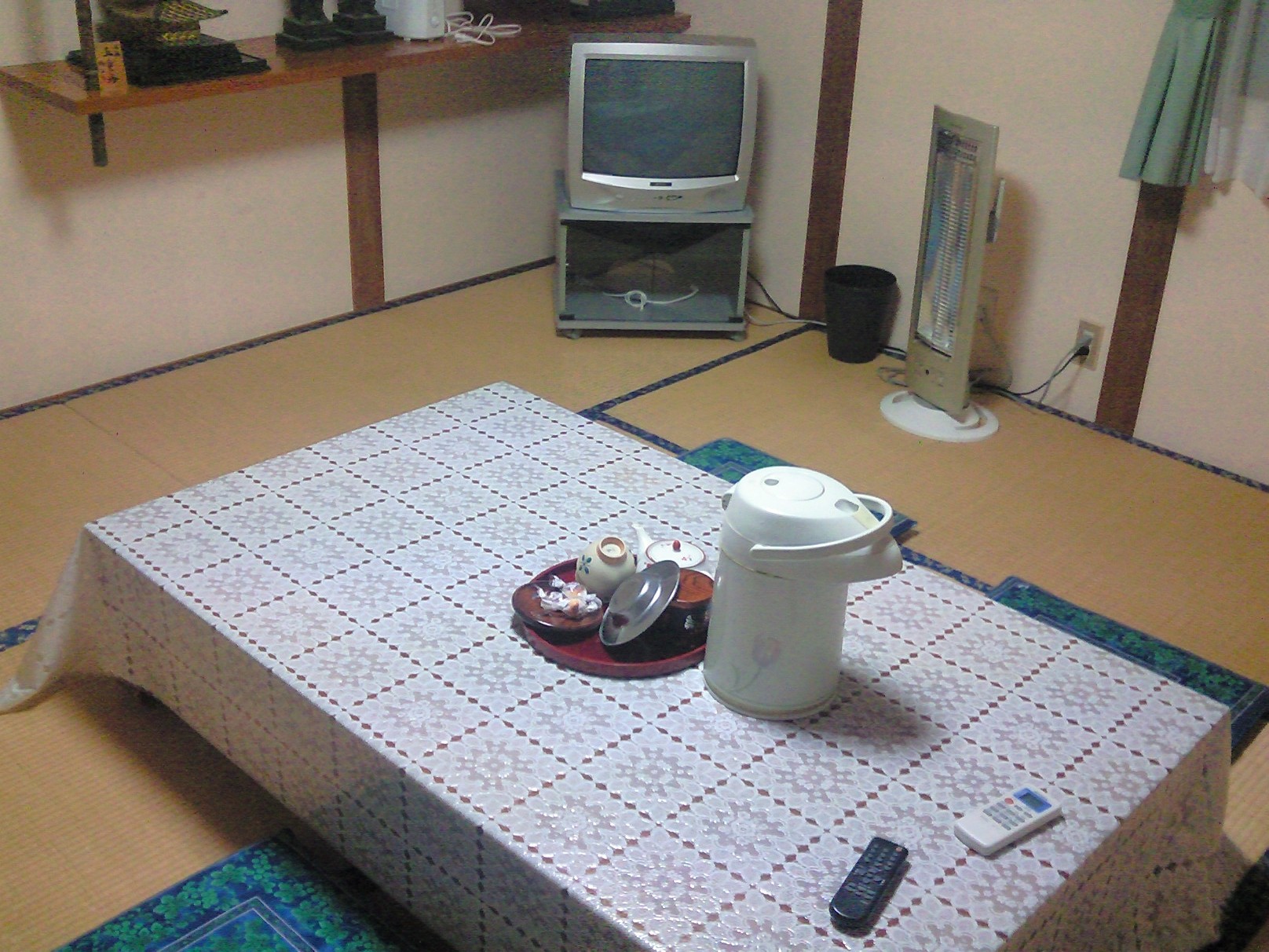 暗くなっていたので玄関が幻想的であった。部屋は和風で少し古い感じであった。正直なところ洋風のホテルが好きなのでちょっと落ち着かない感じ。日本人なので普通は和風がいいのであろうが、飲み会の夜ぐらいはいつもと変わって、洋風でバス・トイレつきの方が私はいい。