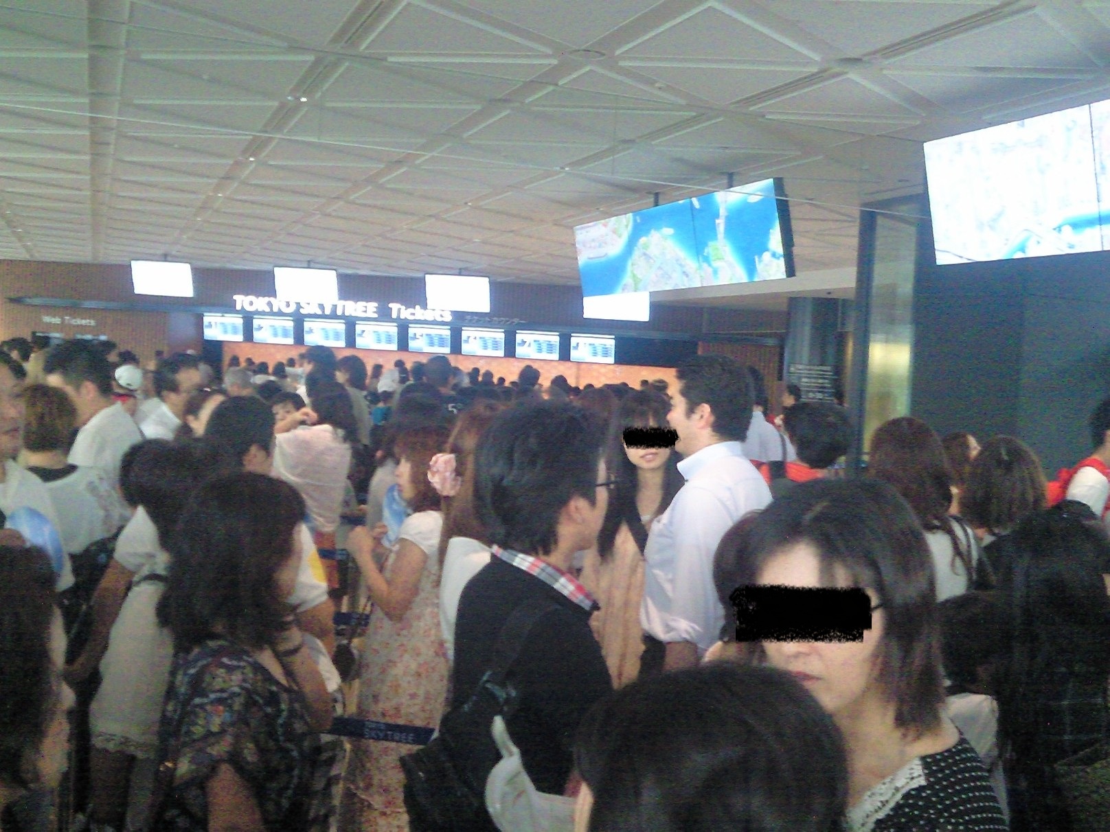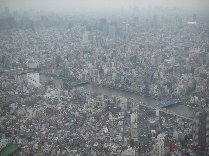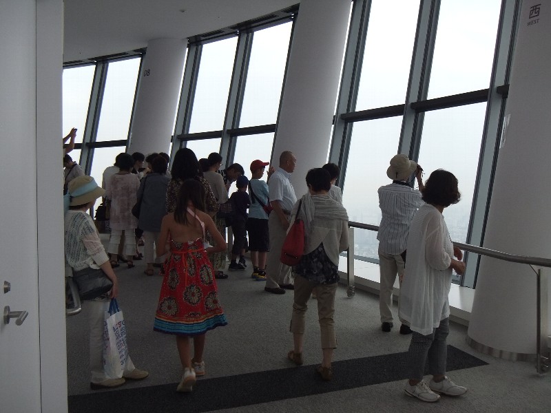 次にびっくりしたのはエレベーターの速さこの第1展望台まで約50秒、時速60km、分速600m移動する。秒速では10mである。しかも、最初は動いていることに気づかず、耳が痛くなって初めて表示をみると、普通は1m、2m、と変わるのであるが、10m、20m・・・・と変わっていく、静かさと速さにびっくり・・・・ 興味のある人はこちらへ東芝スカイツリーエレベータへ