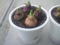 ずるずるしてしまった。今週日曜日に急きょ水耕栽培をしたヒアシンスを土に植え替えた。根がすでに2cmほど伸びているので植え替えが大