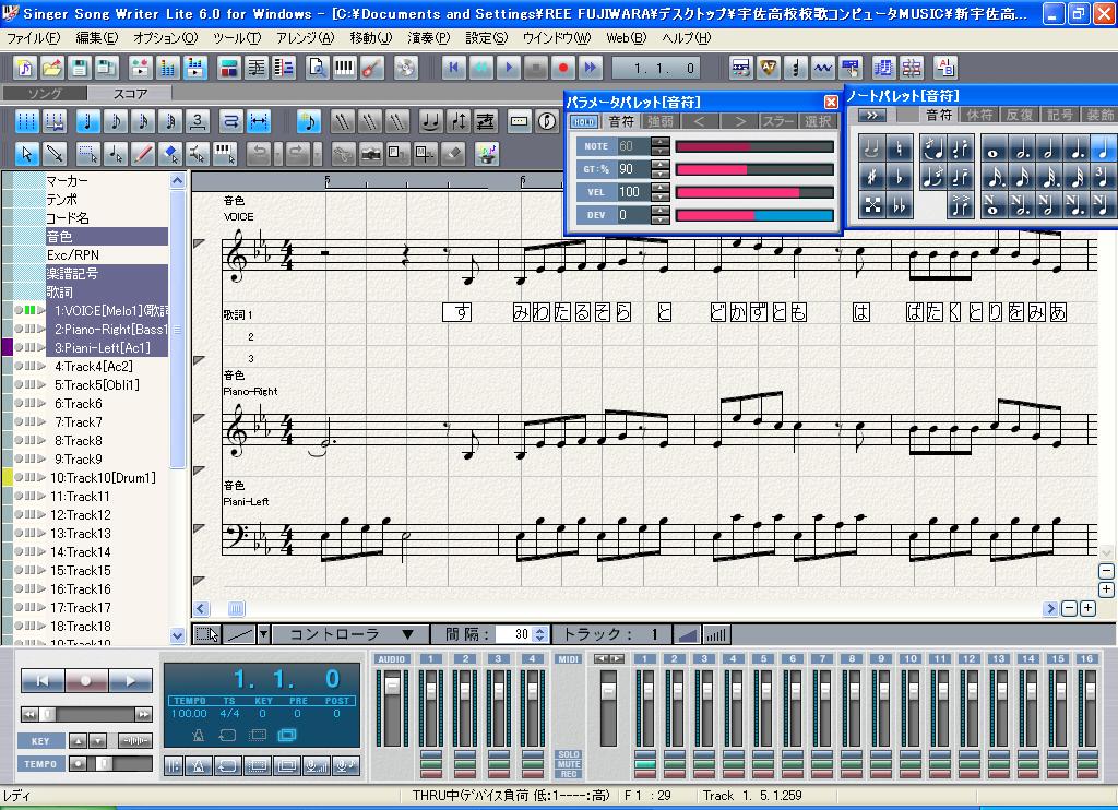 今朝、歌詞1番も入力して、一応仮完成となった。