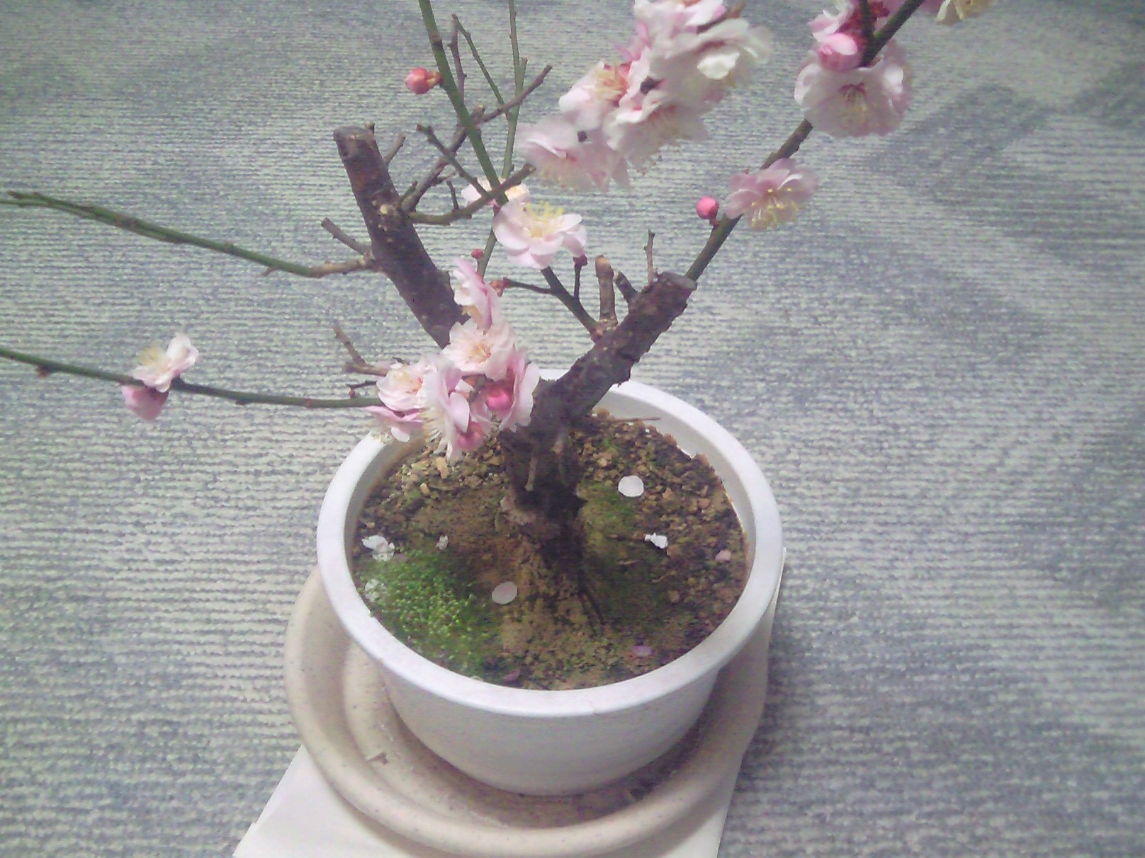 写真は部屋の中に撮影のために取り込んだ梅である。ほんのりいい香りがしている。