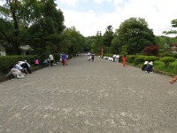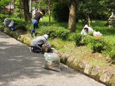 まずは、8時半からクリーンアップ宇佐、宇佐神宮内の清掃ボランティア活動。保護者、生徒、教師で、約130名が集まった。