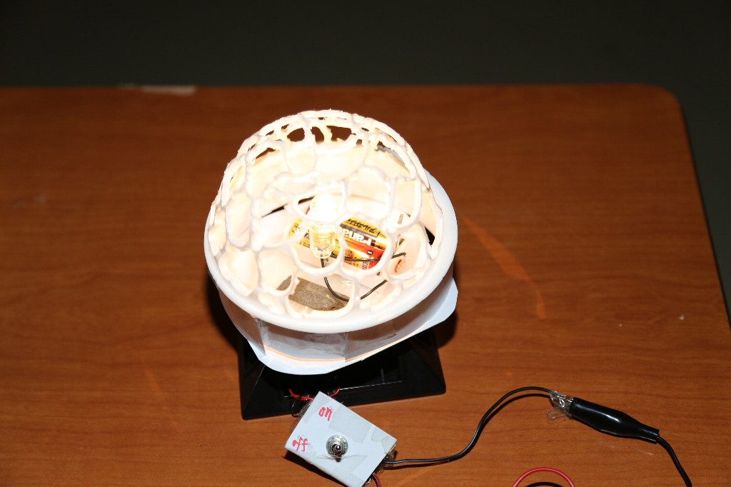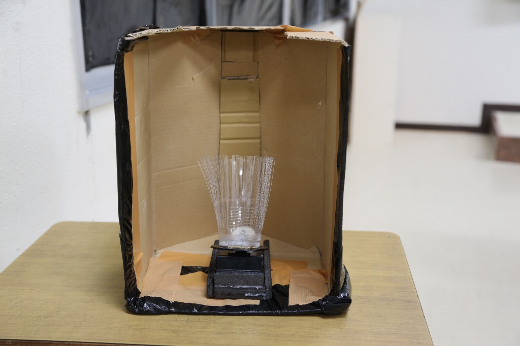プラネタリウムに最適な極小フィラメントの電球に、太陽電池で回るテーブル、これで発光がときどきとざされまたたくように見える。