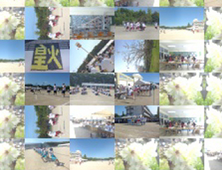 部分拡大写真はこちら、校舎の文字の「校」の部分を拡大したもの。活動写真で出来ている。