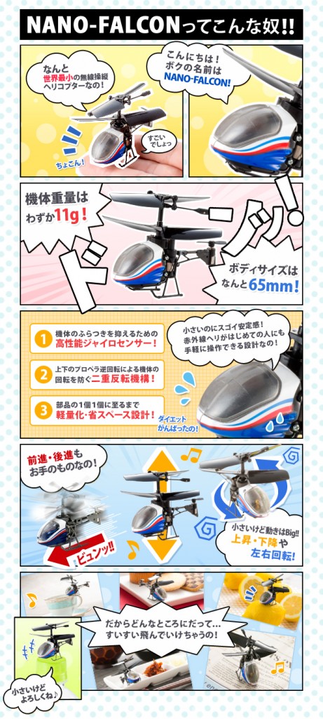 テレビで見て衝動買いでNANO-FALCON 小型リモコンヘリコプターを買った。
