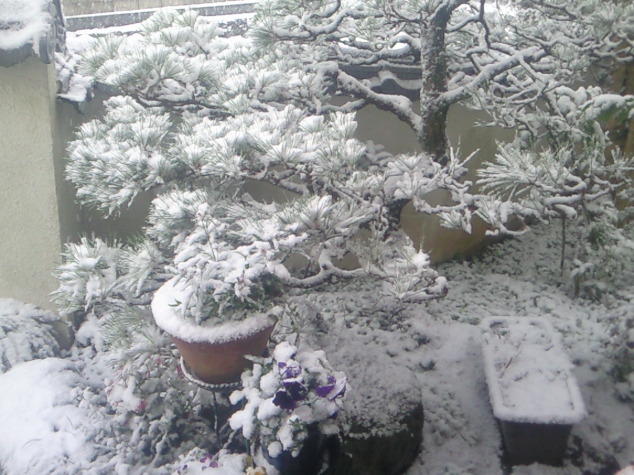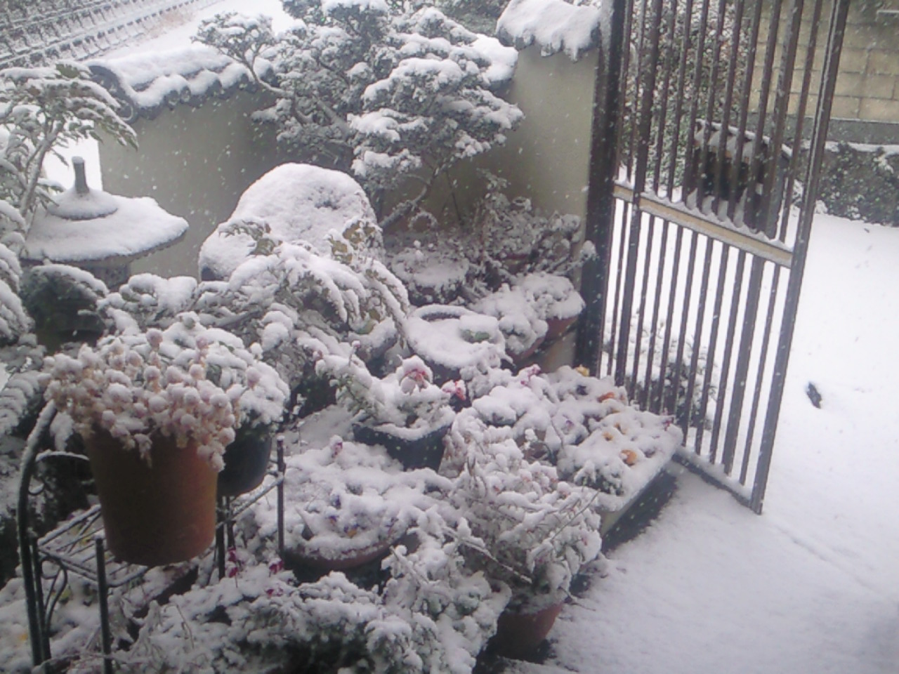 玄関先の商物が寒そうに雪に覆われてしまった。