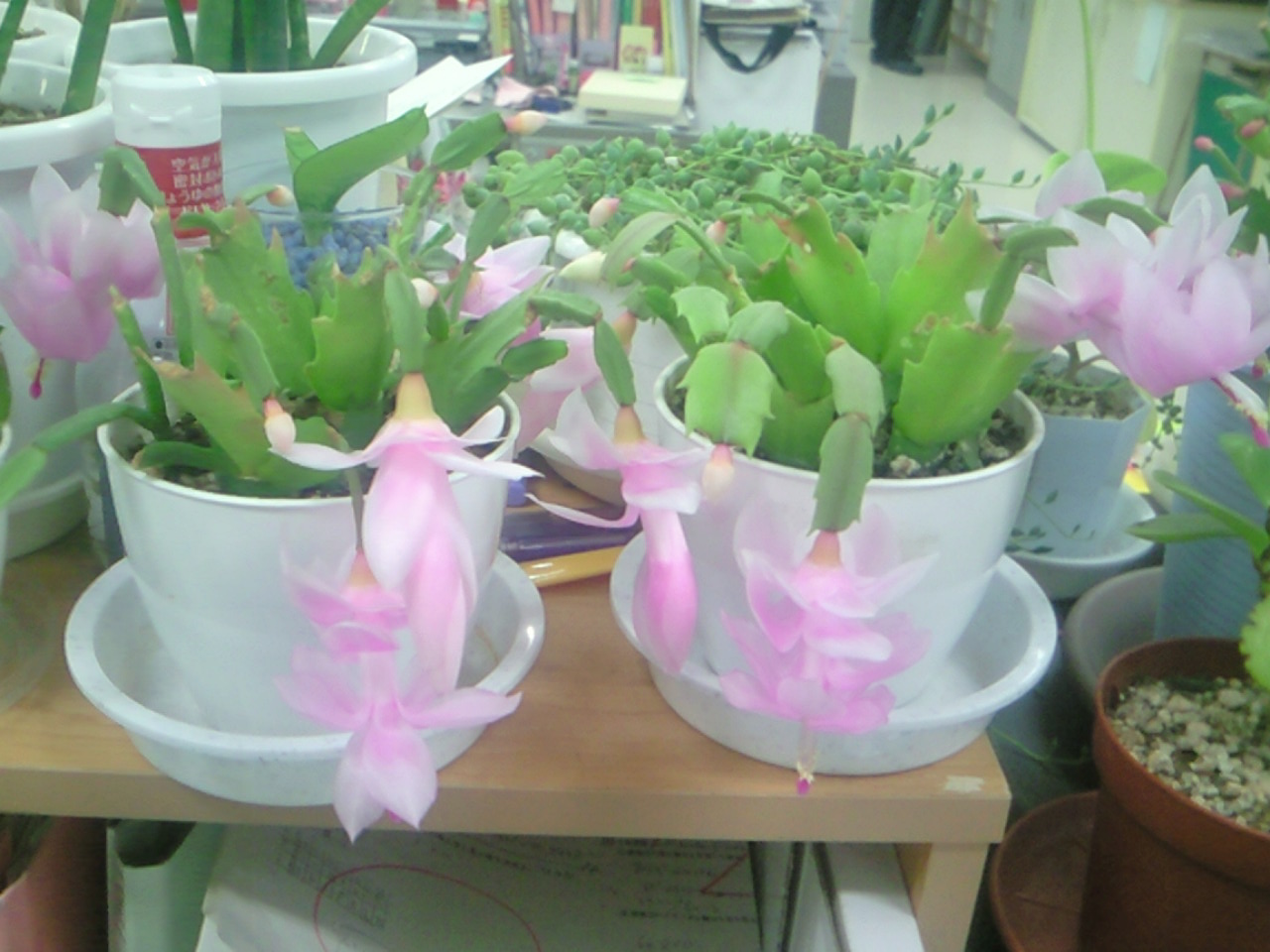 今日ベランダで開花し始めた梅第1号を学校へ移動した。
