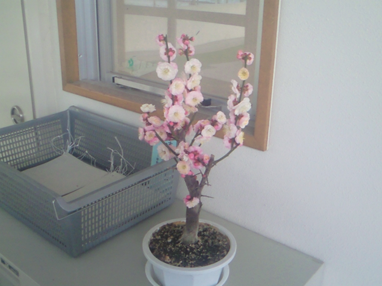 今週校内においた梅の香りがいい。甘い香りのする白梅