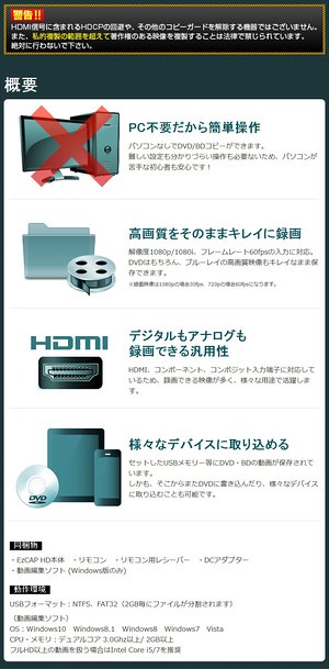 眉唾もので購入した。さっそく実家で、NHKの番組をポータブルブルーレイプレーヤーからファイルとして取り込んで(録画)してみた・・・駄目・・・・画面は緑で何も表示されず、ビデオファイルも緑で表示されない・・・・あれこれ設定を変えたり・・・・結局駄目だった。