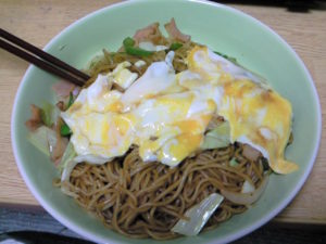 最初のものは今日つくった焼きそば・・・たっぷり野菜とハムなどに
