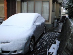 早朝から雪が降り始め、真っ白に雪化粧、