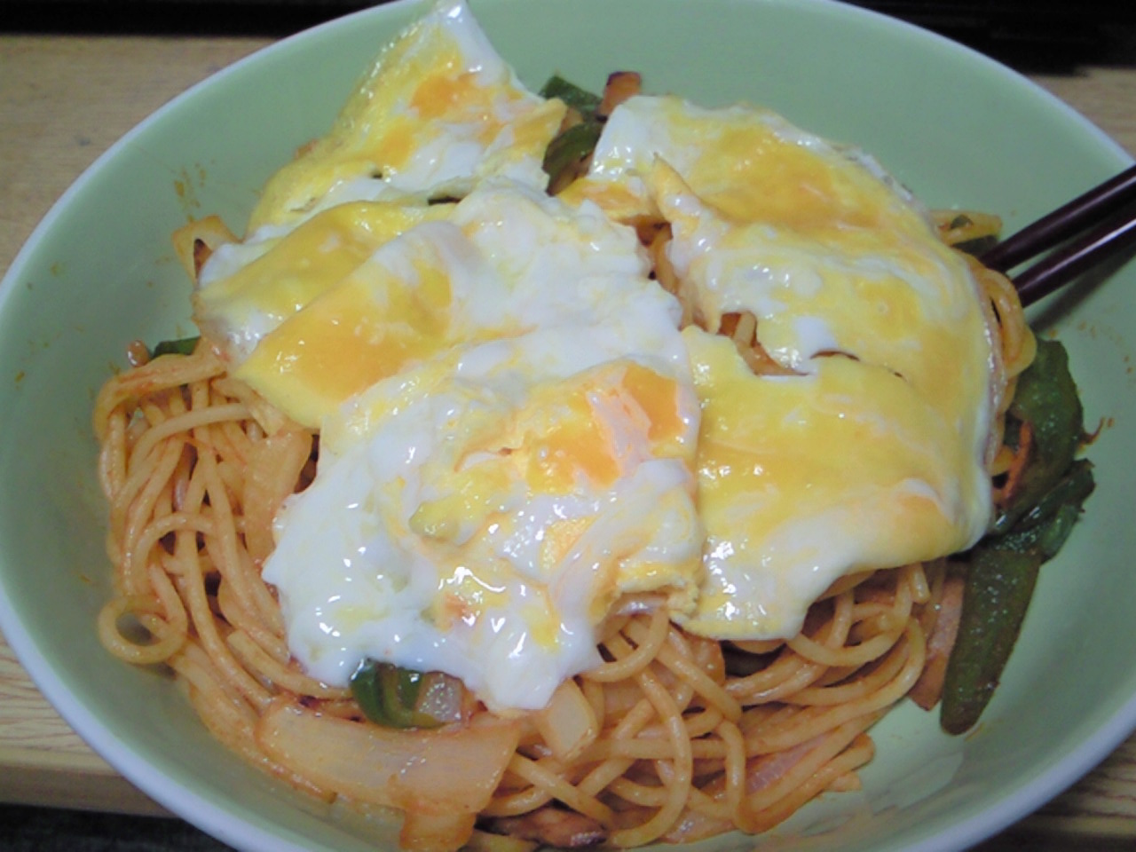 最初のものは今日つくった焼きそば・・・たっぷり野菜とハムなどに