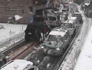 こちらは土砂降りの雨だけど・・・箱根はなんと大雪 予報は雨を信じていた人は困っているらしい。箱根は今日次のように積雪も