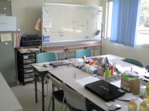 前の転勤時、ほとんどそのまま私物や教科・部活動で使うものをウィンドウや棚などにぶち込んでいた。6年間にさらに増えた。