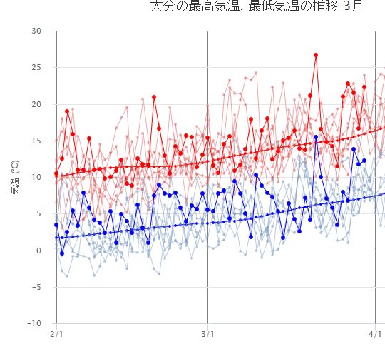 今年のデータは次の通り 実際の平均と今年のデータをグラフで比較している。明らかに暖冬・・・・