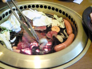 今日の注文は上ロース、ソーセージ、野菜サラダ、、焼き野菜などを注文した