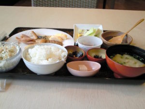 お楽しみの朝食は・・・ 写真の横にもコーヒーなどがあるが写しこそこねた。
