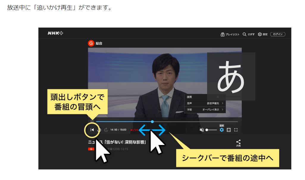 登録しないと右下に文字が残るだけ、登録は簡単・NHK受信契約をしていれば無料なので・・・・一度登録すると便利だと思う。