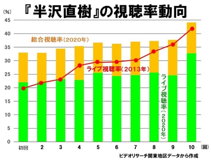 ビデオリサーチが調べる総合視聴率(ライブとタイムシフトの総計)では、最終回は44.1%だった。