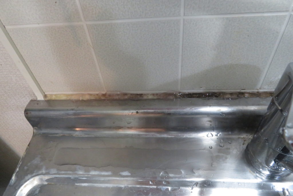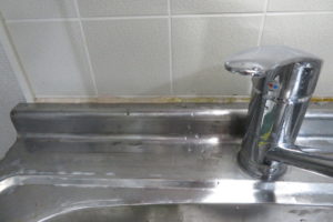 塗ってから1時間から24時間おくと取れると聞いてアマゾンで購入した。でもどうせ頑固なカビは取れないと眉唾もので取り寄せたが・・・・実際のカビ取りの様子はこちらまずは、カビがしっかりとついた台所の様子・・・・