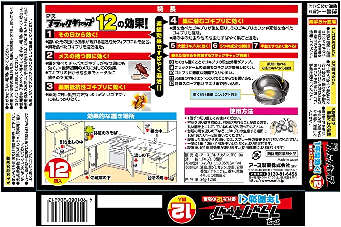 以前は、類似品のホウ酸団子やコンバット等を購入して置いていたが・・・このブラックキャップにしてからほぼほぼ家にゴキブリがいなくなった。