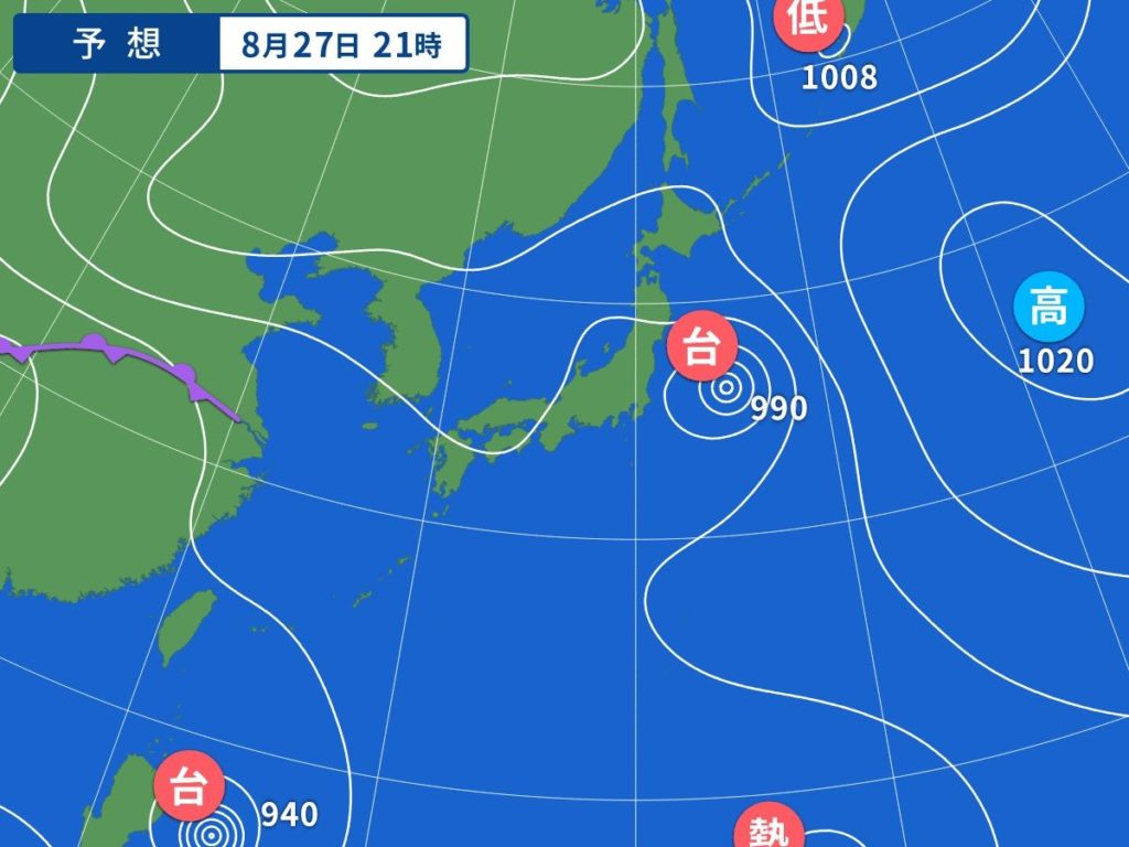 何と、日本の東側に秋雨前線らしい前線が見えている。例年はこの前線が9月の中旬ぐらいから発生する。この前線が南に下がると秋となる。