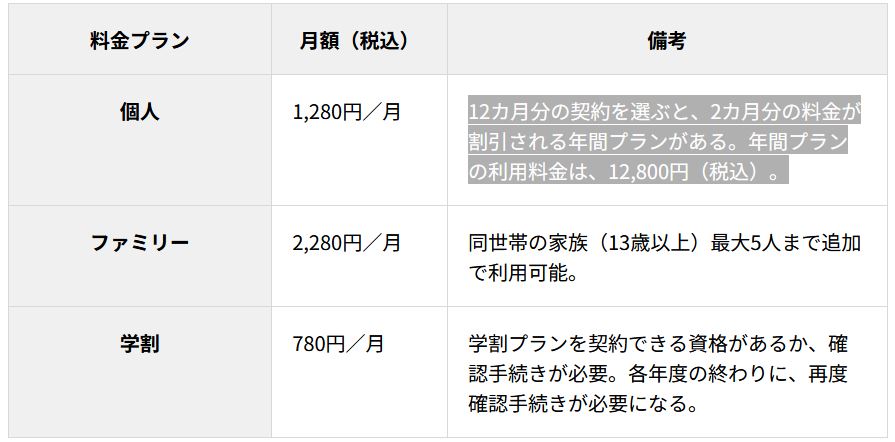 料金プランは、令和5年8月4日に、個人1,180円だったのが100円値上げされている。