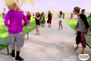 ひとつ抜けているのが この動画の編集点で クリスがお腹に手をあてた後、アングルが足の周りに移った時に胴周りが丸いハムのように膨らんでいる。