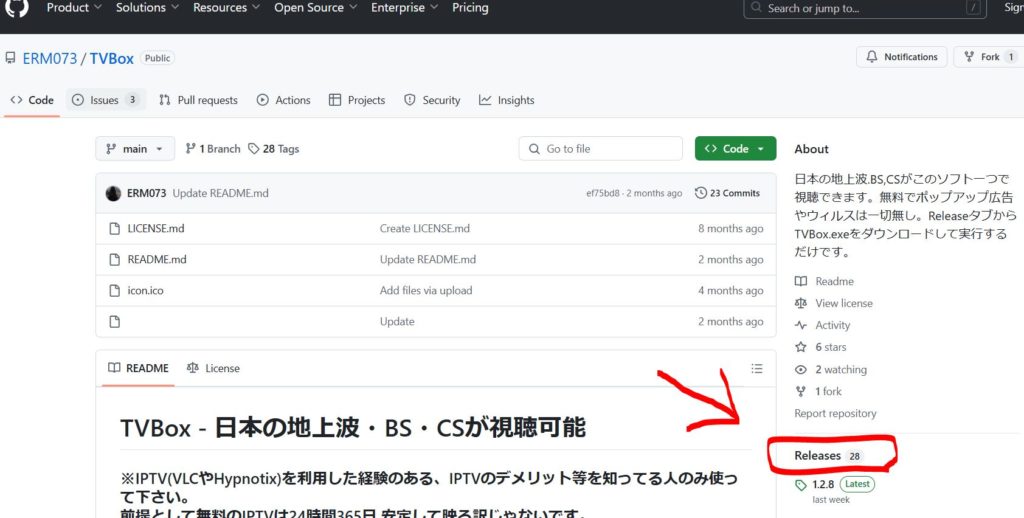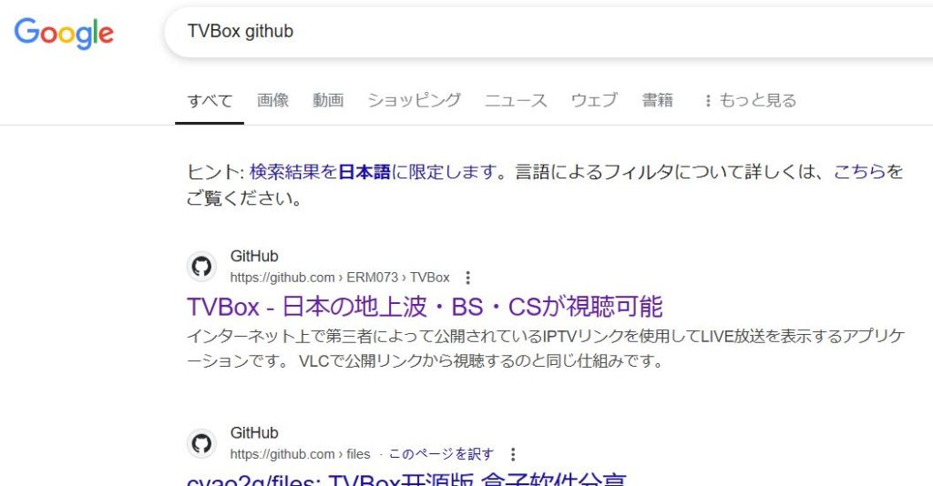 1.検索サイトで「TVBox github」で検索すると、最初の方に次のように候補として出てくる
