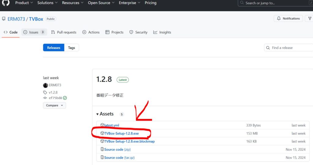4.中央のTVBox-Setup-*-*-*.exe をクリック TVBoをダウンロードする