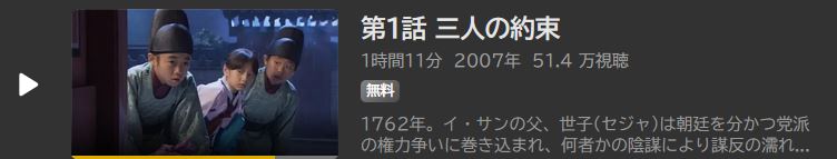 『宮廷女官チャングムの誓い』『トンイ』を手がけた巨匠イ・ビョンフン監督の大ヒット歴史ドラマ。朝鮮王朝史上、最も波乱万丈の生涯をおくったイ・サン、第22代王・正祖(チョンジョ)の半生を描いた超大作。アベマTVで無料視聴できるので紹介する。(Huluでは全話無料視聴可能:日本語字幕)