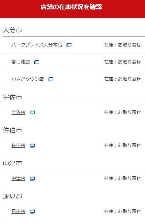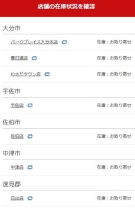 ネット上を探していたら何故か、大分のパークプレイスだけに在庫があるようになっていた。