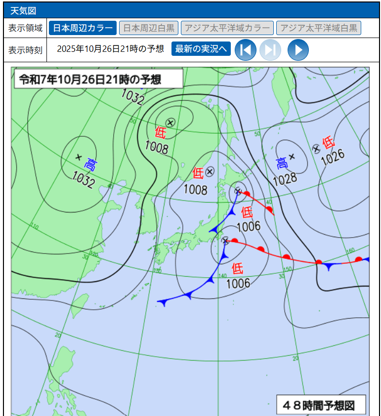 トリプルどころでない、縦4連低気圧予想図を見た。自分では初めて・・・