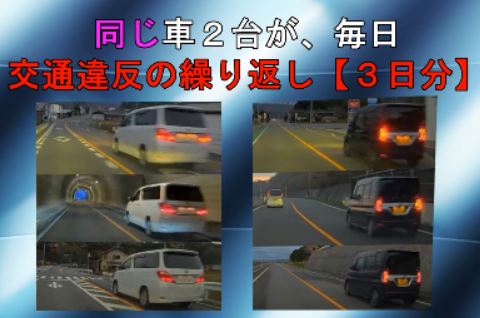 これが何と毎日同じ車が2台とも交通違反をどうどうと繰り返していることが分かった。悪びれた様子もなく、普通にウィンカーを出しながら追い越しする。