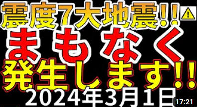 実際に2月から予告していると昨日3月2日深夜朝、マグニチュード5の地震が関東で起こったが、またもや