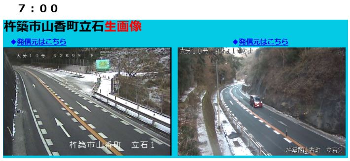結果てきには何と国東は約7cmの積雪だった。今日が休日で出勤時の車の移動に心配がなくてよかった。この日のライブカメラの様子は次。