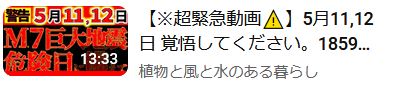 このチャンネルでは、 火山博士が『自然』の魅力を わかりやすく発信している。 壮大な自然を知ってもらうことで、 生活に役立ててもらったり、 人間関係によるストレスを解消することを目的として チャンネルを運営しているらしい。今回の大地震予告の動画はこちら 続きを読む