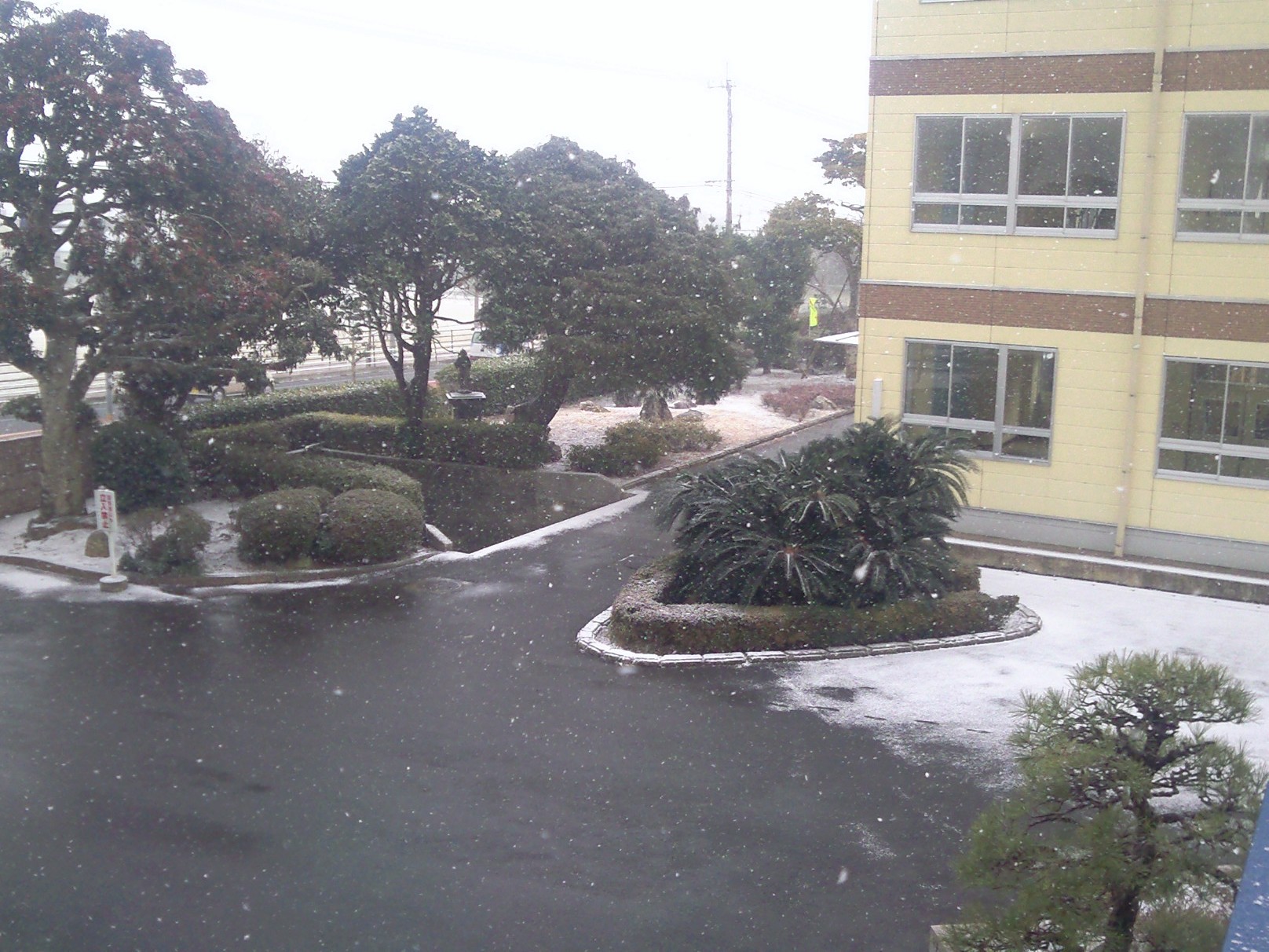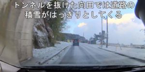 令和6年度 令和7年1月10日(金)冬型強まり降雪 大分県の国東半島周辺は地域によって積雪状態が違うが今回は、国東から宇佐まで道路も全区間積雪・凍結した。映像で黒い部分は地面ではなくブラックアイスバーンで、路面は全区間つるつる。朝の6時前に自宅を出たが、フロントガラスが積雪と凍結でそれをとかすのに15分程度かかった。幸いにも前日夕方、布チェーンは装着していたので、それを装着する時間は不要であった。